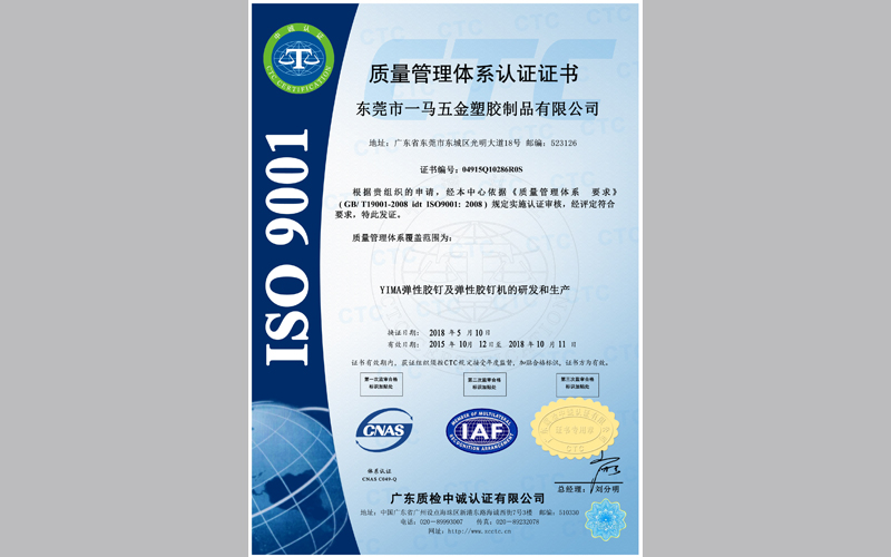 ISO質(zhì)量體系認(rèn)證-一馬膠針及膠釘機生產(chǎn)過程